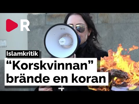 Se klippet: “Korskvinnan” bränner en koran på torget